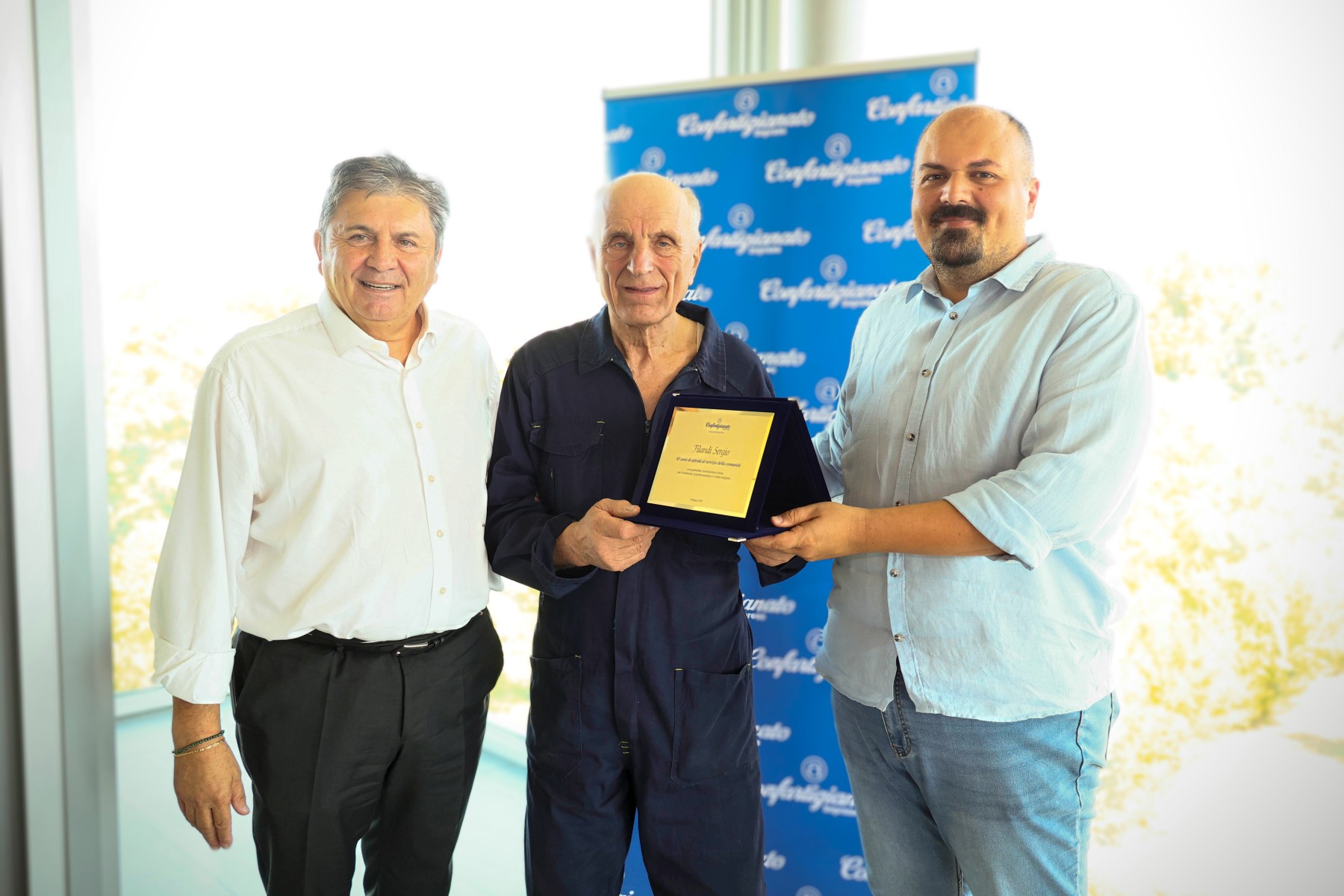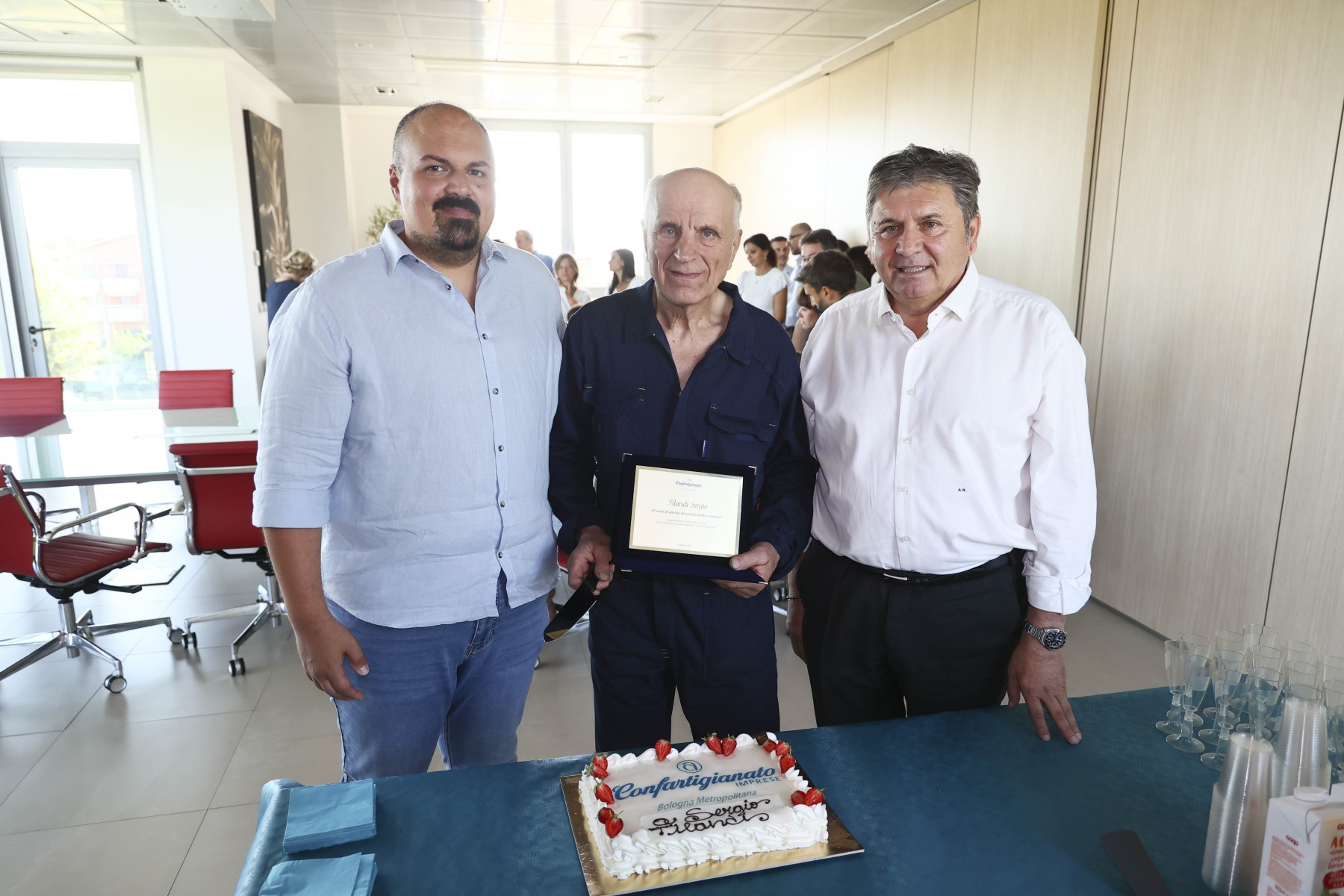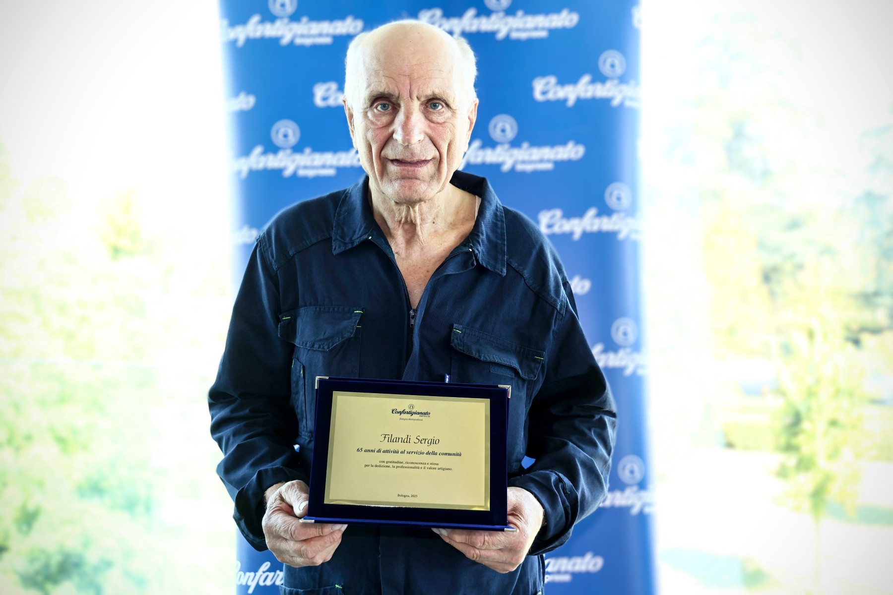 “65 anni al servizio della comunità”, poche parole ma che spiegano chi è Sergio Filandi, artigiano 80enne di Fontanelice. Confartigianato Bologna Metropolitana ha voluto celebrare questo importante traguardo giovedì 4 settembre con una targa e con una breve cerimonia, conclusa con il tradizionale taglio della torta.