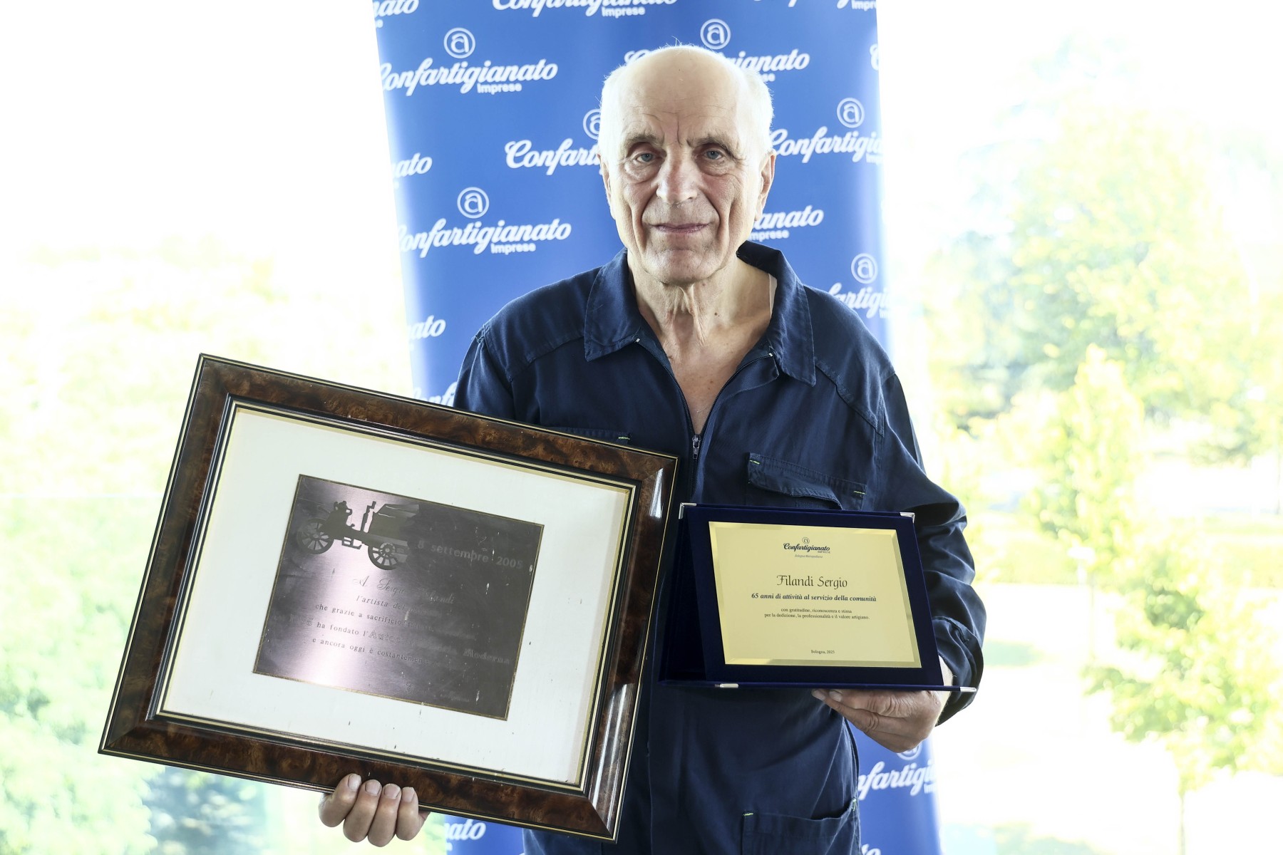 “Sergio è sempre stato un uomo di poche parole, ma ha un cuore grande come un grattacielo e ha delle mani d’oro. A dispetto dei suoi 80 anni ha ancora una agilità che gli permette di sdraiarsi sotto le auto, dentro all’abitacolo. E poi la forza, tanto che io lo chiamo il Superman della carrozzeria. Una forza quasi disumana, tanto quanto il suo cuore e la sua bontà”, ha aggiunto Marina Zuffa, responsabile dell’ufficio Confartigianato della Vallata del Santerno