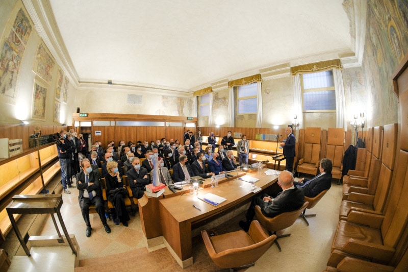 In conclusione un pensiero alla stretta attualità: “L’Italia è in un momento magico, un Paese molto flessibile, molto duttile, che sta riprendendosi con un’energia simile a quella degli anni degasperiani, che rappresentarono una sorpresa in tutta Europa. Non dobbiamo correre il rischio di fare l’errore, tipico dell’Italia, di mettere in discussione tutto e sempre. Finiremmo per paralizzarci. Dobbiamo invece correre, bisogna utilizzare al meglio il tempo che abbiamo di fronte. Arriveranno delle risorse che sono un multiplo di quelle del piano Marshall, una sorpresa nella qualità e nella dimensione, ma non sediamoci sugli allori e cerchiamo di utilizzarli nel migliore dei modi. L’Italia è un Paese che ha ancora molte povertà che dobbiamo ridurre, ma ha anche molte ricchezze, una grande quota di risparmi che dovrebbero essere indirizzati verso investimenti produttivi. Oggi, purtroppo, gran parte del risparmio viene investito all’estero, occorre trattenerlo e semmai attrarne anche da fuori confine. Ma per farlo occorre agire sulla pressione fiscale verso le imprese, che oggi è superiore di 4 punti alla media europea, e sul capitale, che è 6 volte superiore. Quindi bisogna assolutamente andare verso una omogeneizzazione della pressione fiscale tra i Paesi europei, per evitare concorrenze sfrenate e guerre economiche. E finché non si arriverà a questa omogeneizzazione, dovremmo avere una pressione fiscale più bassa. È l’unico modo per essere gli artefici di un nuovo miracolo economico che porterà frutti a tutti noi, all’Europa e anche alla solidarietà internazionale”.